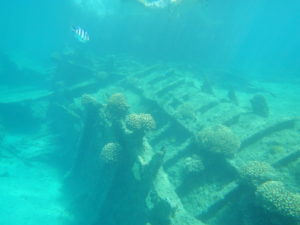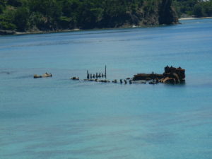ビーチの沖に難破船があり、絶好のシュノーケリングスポットです。 海から上がれば自然のシャワーがあります。