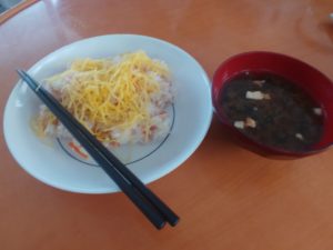 食事はパックご飯とレトルト食品のおかずが中心ですが、海が穏やかなときは少し手を加えたものをいただきます。